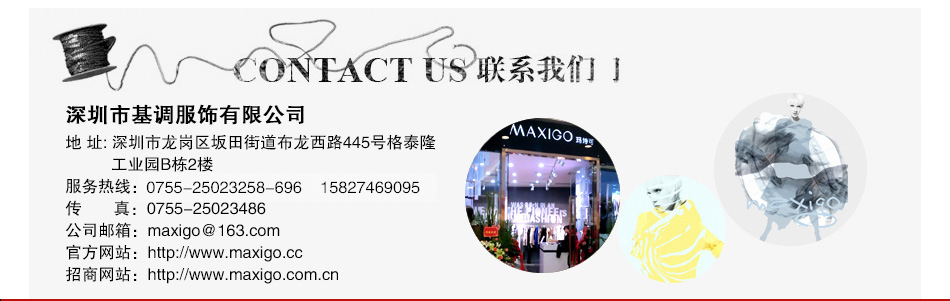 | 瑪詩可女裝擁有遍布于全國各地的買手、富有創(chuàng)新和豐富經(jīng)驗的設計師團隊以及國外一線時尚品牌設計師團隊結合;無論從產(chǎn)品研發(fā)、新款上市速度均領先于同行,被業(yè)界譽為“流行時尚的快速復制者”。 超過40家以上加工生產(chǎn)戰(zhàn)略合作伙伴,產(chǎn)品質(zhì)量和上貨速度擁有強大保證。 瑪詩可女裝提供確實可行的盈利合作模式,針對不同區(qū)域市場狀況及市場變化,制定各種不同的個性化營銷方案及貼近市場的政策扶持,被加盟商稱之為是“一個可以貼近市場先利他再利己的公司”。 瑪詩可女裝擁有在同行中處于領先實力的培訓團隊,為終端店鋪銷售提供充分而有全面的市場銷售分析與指導,讓您贏在終端,贏在起跑線上。 MAXIGO瑪詩可女裝正在打造的服裝商學院,將為您提供學習和提升的機會,致力于把您變成教導型企業(yè)家,未來還將為您源源不斷地培養(yǎng)和輸送服裝各崗位優(yōu)秀人才。 |